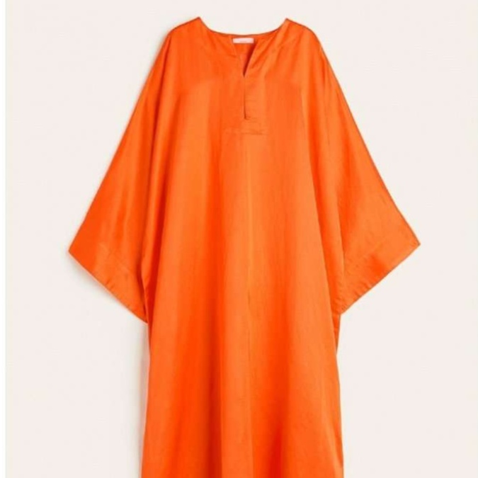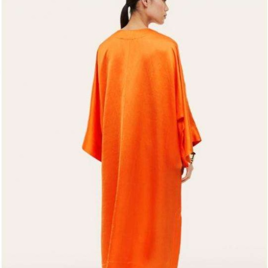 ドレープ感のある生地を使用した、ゆったりとしたシルエットのチュニック風ワンピース。幅広の袖デザインと長めの着丈が、リラックスした印象を与えます。上品な雰囲気と快適な着心地を兼ね備え、デイリースタイルから特別な日まで幅広く活躍する一枚です。どんなボトムスとも相性抜群で、コーディネートの幅を広げるアイテムとなっています。