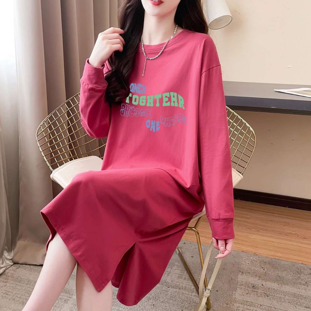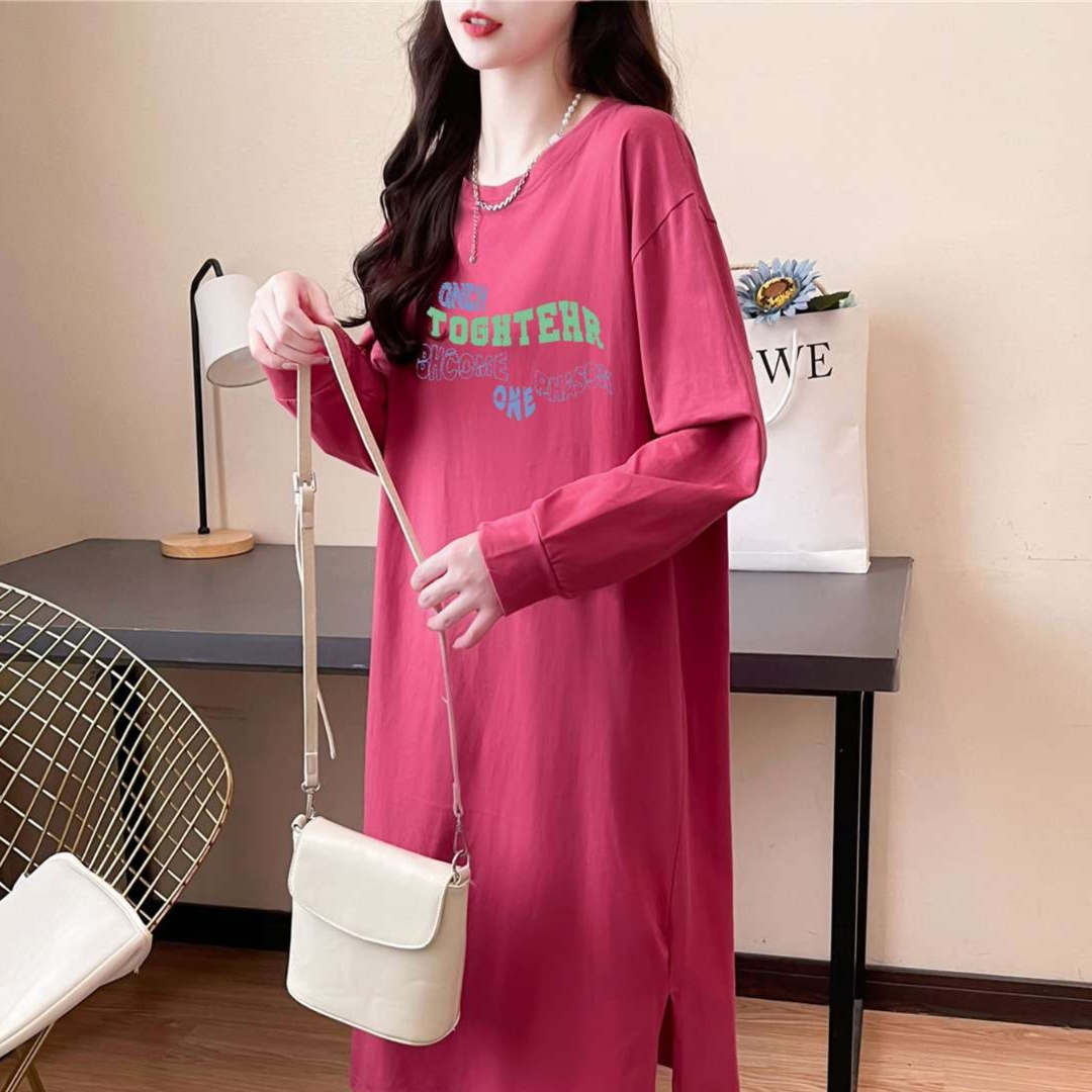 長めの袖丈と膝下丈で、リラックス感のある着心地を実現。