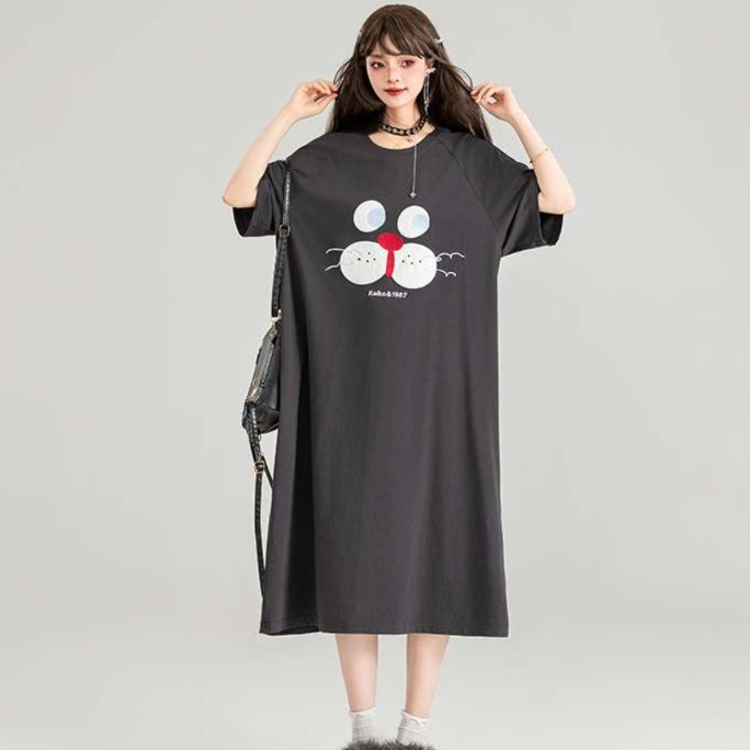 愛らしい動物の顔が胸元にデザインされたチュニックワンピース。ゆったりとしたシルエットが魅力で、快適な着心地を実現。かわいらしい白い靴下やもこもこスリッパとのコーディネートで、あなたの個性を引き立てる一着に。日常使いからリラックスタイムまで、幅広く活躍するアイテムです。自分だけのスタイルを楽しんで。