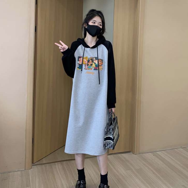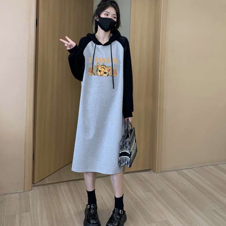 リラックス感漂うシルエットのチュニックワンピース。愛らしいキャラクターのプリントが魅力を引き立て、カジュアルな雰囲気を演出。フード付きデザインは、季節の変わり目にぴったりのアイテム。黒のソックスや厚底シューズを合わせれば、トレンド感満載のスタイルが完成。普段使いからお出かけまで幅広く活躍する一着。あなたのワードローブに加えて、特別な日常を楽しもう。