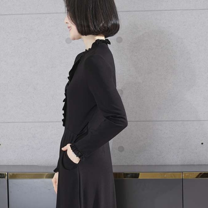 洗練された襟元のフリルデザインが魅力的なチュニックワンピース。柔らかな素材感が心地よく、カジュアルからフォーマルまで幅広いシーンで活躍します。シンプルなボトムスと合わせても、存在感を放つ一着。大人の女性にぴったりのスタイルを実現します。
