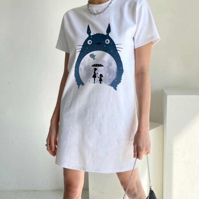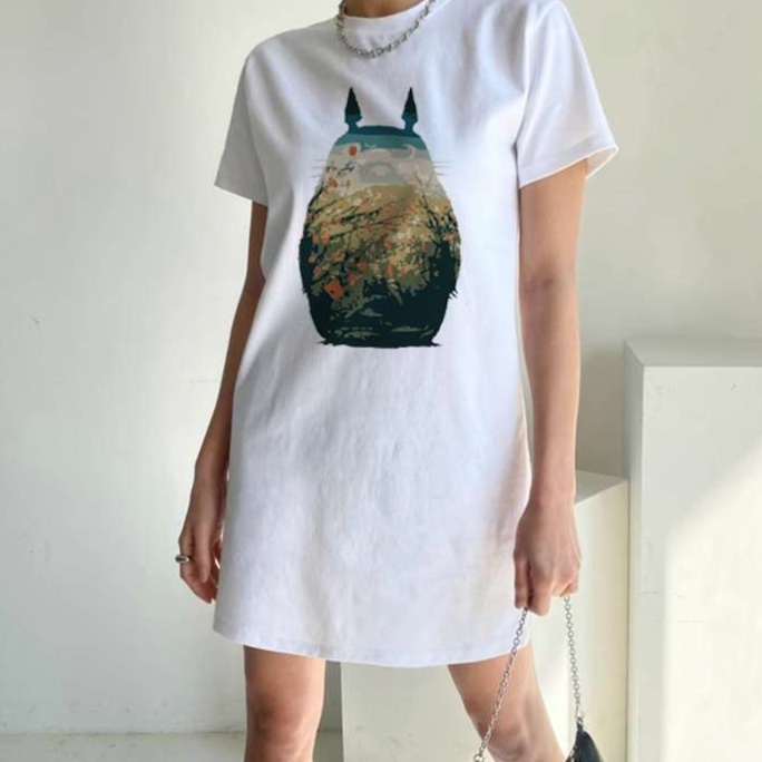 ジブリ作品からインスパイアを受けた魅力的なイラストが施されたチュニックワンピース。軽やかな素材感が心地よく、普段使いにも特別な日にもぴったりのアイテム。上品なシルエットが女性らしさを引き立て、リラックスした着心地を提供します。個性的なデザインで、どんなスタイルにも合わせやすく、コーディネートの幅が広がります。あなたのワードローブに新しい風を吹き込む一着です。