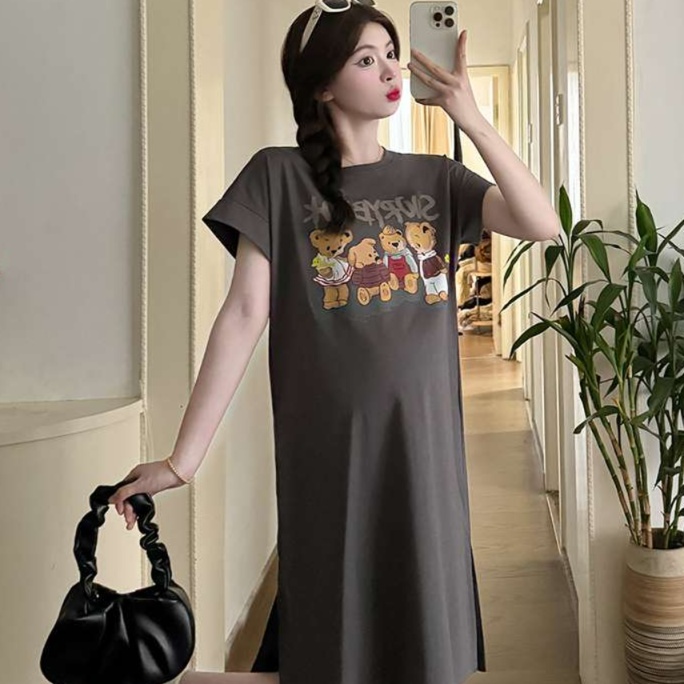 リラックスした着心地が魅力のチュニックワンピース。胸元には愛らしいくまさんのイラストが施され、カジュアルな雰囲気を引き立てます。普段使いに最適で、インナーを工夫することで、シーズンを通じて楽しめる万能な一着。さまざまなシーンで活躍すること間違いなしのアイテムです。