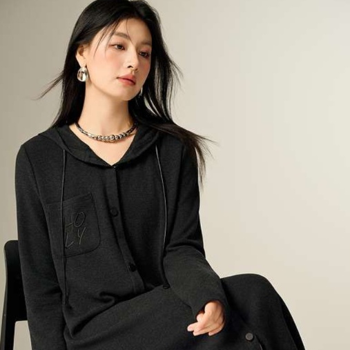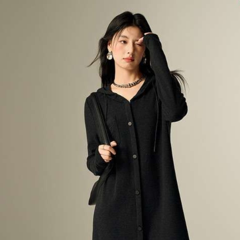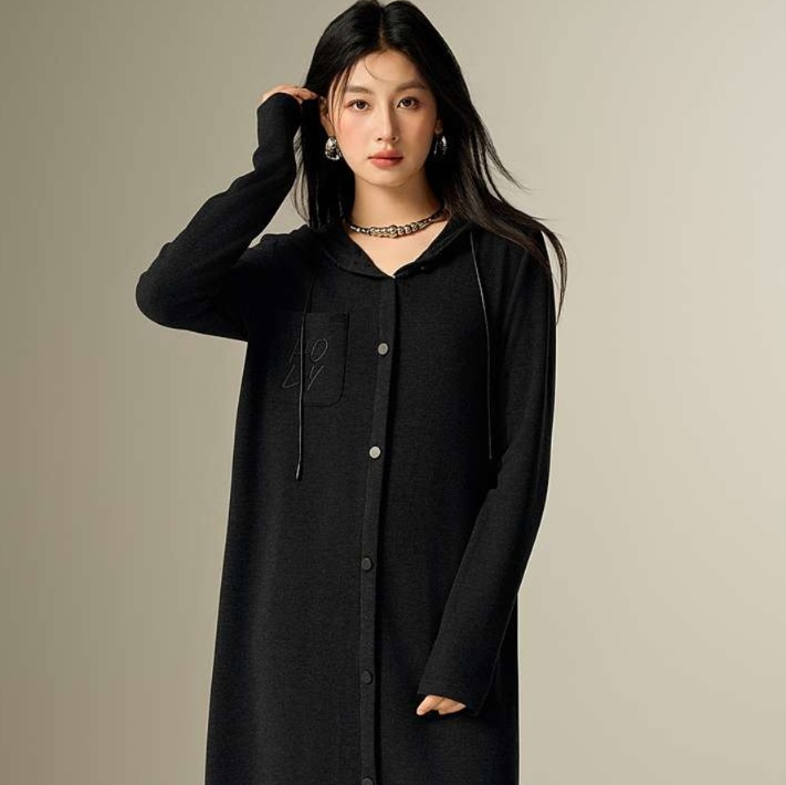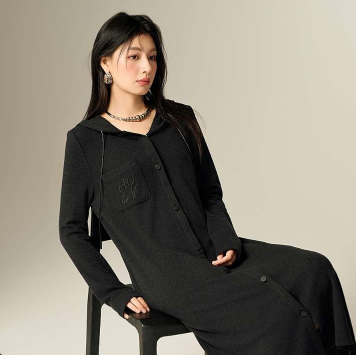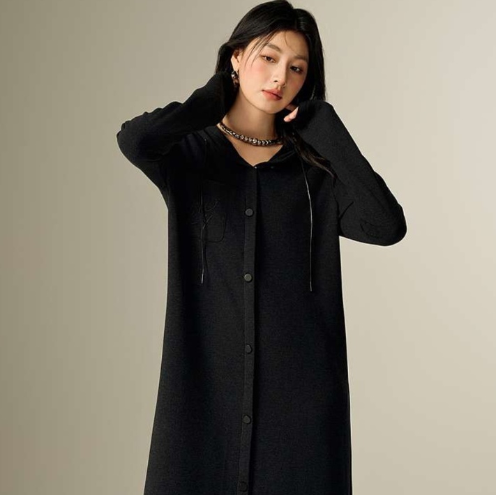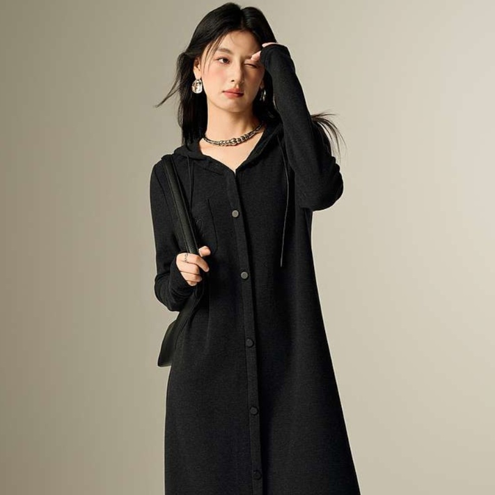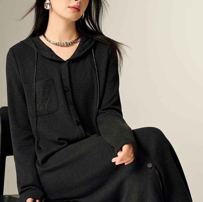 フード付きでカジュアルな雰囲気を演出するワンピースとしても活躍。