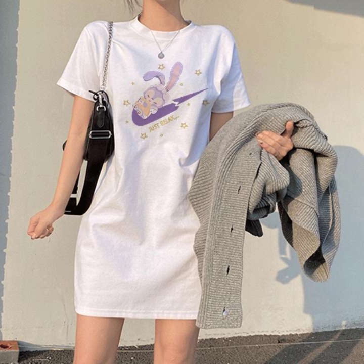 可愛らしいうさぎのイラストがフロントにデザインされたチュニックワンピース。 シンプルなデザインながら遊び心のあるプリントで、カジュアルな着こなしを楽しめる一着。 ゆったりとしたシルエットで着心地も抜群。