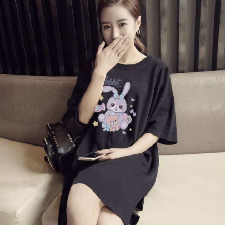 このチュニックシャツは、リラックス感あふれるゆったりシルエットが魅力です。可愛らしいうさぎのキャラクターがプリントされており、カジュアルなスタイルにぴったり。伸縮性のある素材が心地よい着心地を提供し、日常使いにも最適です。軽やかに動けるデザインで、さまざまなコーディネートに活躍する一着です。