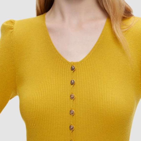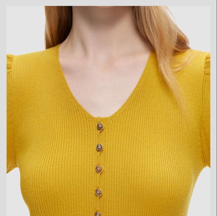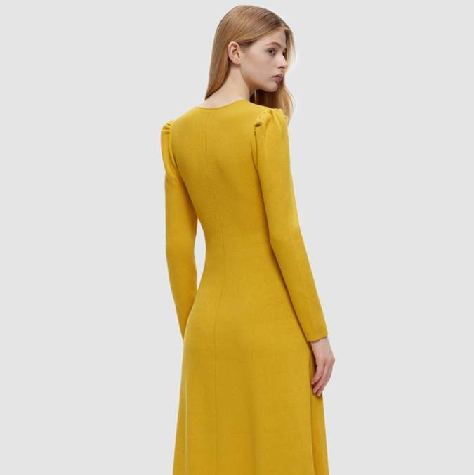 細かなリブ編みが施された生地は、体にフィットしながら高級感のある仕上がりに