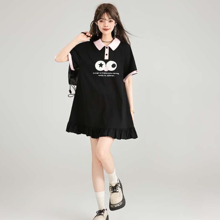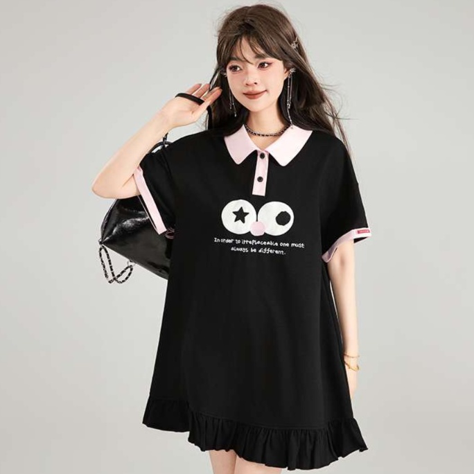 丸襟とフリル裾がかわいいチュニックワンピース。