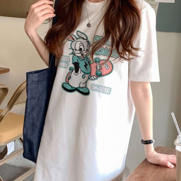 愛らしいウサギのキャラクターがデザインされたチュニックワンピース。ゆったりとしたシルエットが特徴で、リラックスした着心地を提供。普段のカジュアルスタイルにも、家でのリラックスタイムにもぴったりな一着。どんなシーンでも活躍する、あなたのワードローブに欠かせないアイテムです。