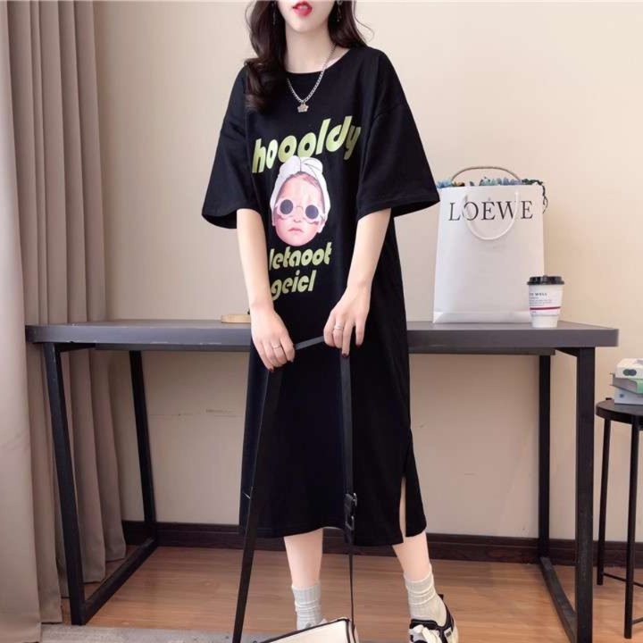 イラストプリントが魅力的なチュニックワンピース。ゆったりとしたシルエットで、リラックスした着心地が楽しめる。裾のスリットが大人の女性らしさを引き立て、可愛らしさもプラス。普段使いからルームウェアとしても活躍する、 versatileな一枚で、さまざまなシーンにフィットするアイテムです。