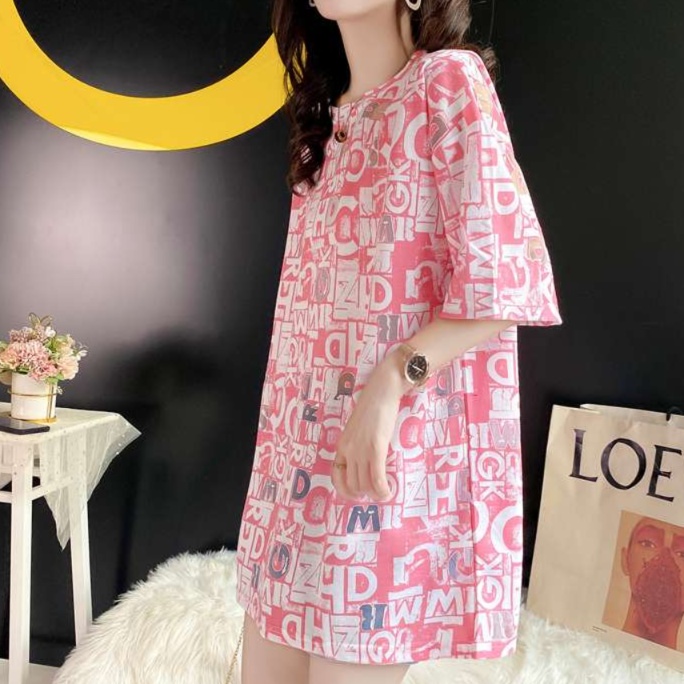 ランダムな文字柄が印象的なチュニックシャツ。リラックス感のあるシルエットが、デイリースタイルにぴったり。オーバーサイズデザインはカジュアルなデニムと絶妙にマッチし、シンプルながらも個性的な着こなしを楽しめる一着。快適な着心地で、さまざまなシーンに活躍するアイテムです。