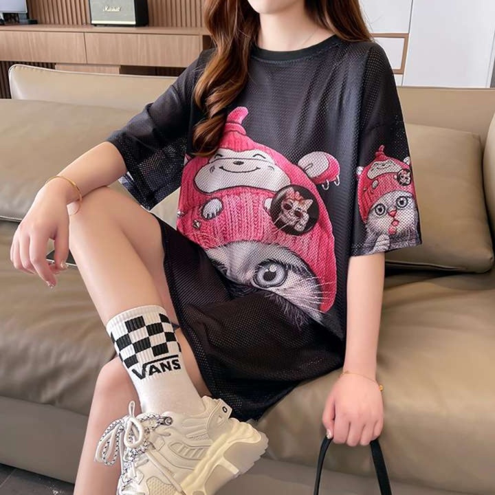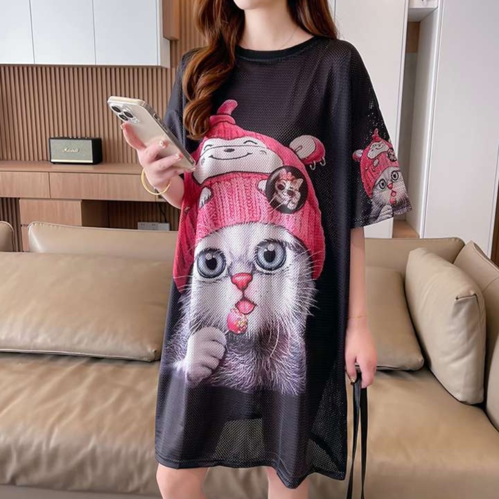 ニット帽をかぶった可愛い猫のイラストが魅力のチュニック。リラックスしたシルエットが特徴で、ワンピースとしても活躍します。カジュアルなスタイルにぴったりの一着で、デイリーユースに最適です。柔らかな素材感が心地よく、どんなボトムスとも合わせやすいデザイン。猫好きにはたまらないアイテムです。ぜひワードローブに加えて、楽しいコーディネートを楽しんでください。