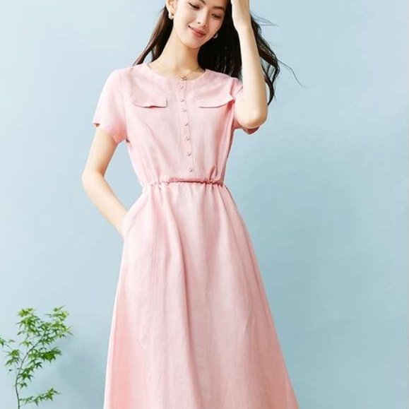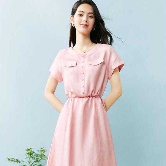 なめらかな素材感が魅力のチュニックワンピース。胸元のポケットデザインやウエストのギャザーが上品な印象を与え、女性らしさを引き立てます。すっきりとしたシルエットは、カジュアルなシーンからきれいめスタイルまで幅広く対応。デイリーユースにも特別な日にも活躍する一着です。シンプルながらも洗練されたデザインで、さまざまなコーディネートを楽しめます。