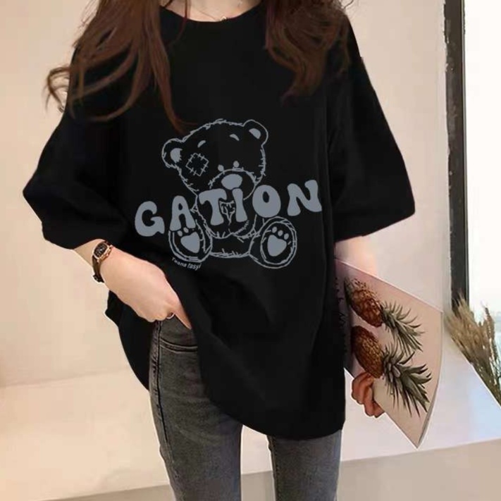 リラックス感溢れるシルエットのチュニックシャツ。胸元には愛らしい子クマのデザインが施され、可愛らしさを引き立てる。カジュアルなスタイルで、デニムとのコーディネートもスムーズ。普段使いにぴったりの一枚、心地よい着心地で毎日のコーデを楽しんで。