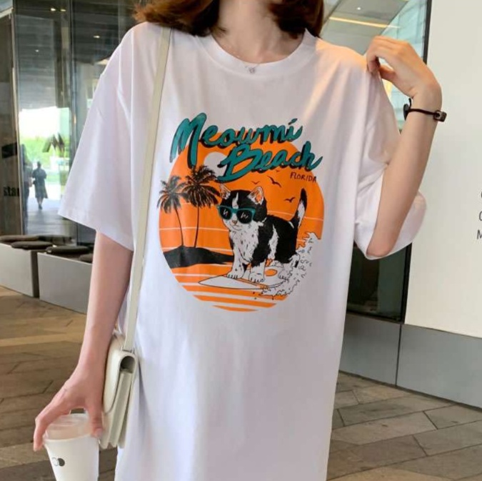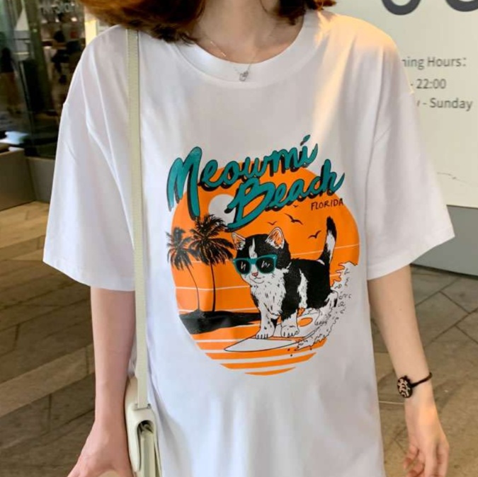 リラックスしたシルエットのチュニックシャツは、軽やかな素材で快適な着心地を提供。胸元には南国ビーチとサングラスをかけた猫の可愛らしいイラストが施され、遊び心満載のデザインに仕上がっています。カジュアルなコーディネートにもぴったりで、デイリー使いに最適な一枚です。春夏のおしゃれを楽しむための必須アイテムとして、ぜひワードローブに加えてください。