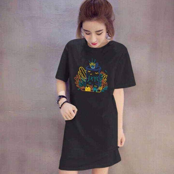 リラックス感あふれるシルエットのチュニックワンピース。愛らしい胸元のイラストがアクセントとなり、デイリースタイルに華やかさをプラスします。絶妙な丈感で、一枚でさらりと着こなせるため、外出時はもちろん、ルームウェアとしても重宝する一着です。シンプルながらも個性的なデザインで、様々なシーンにマッチします。