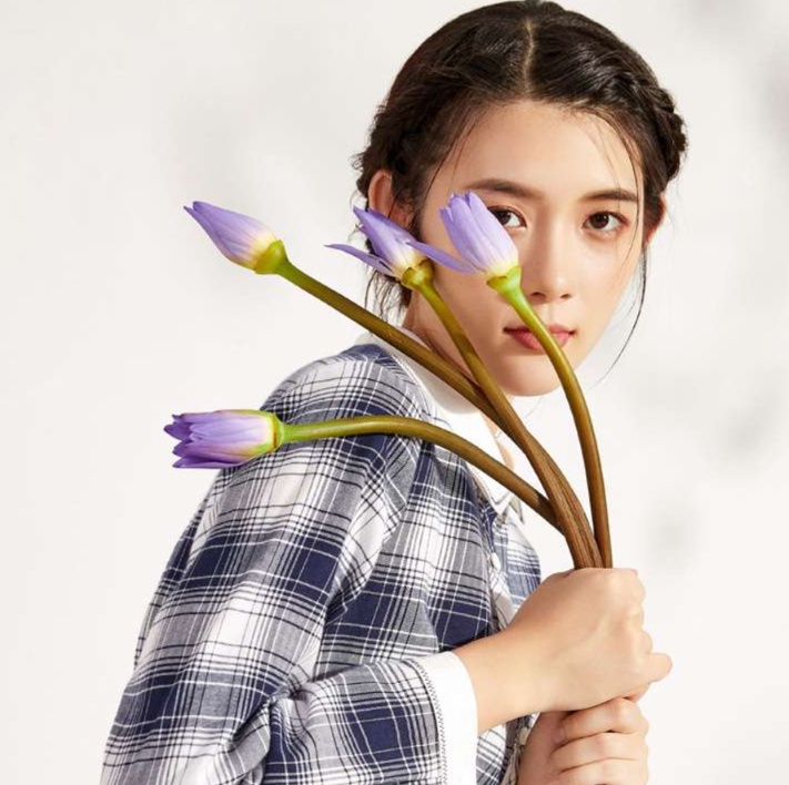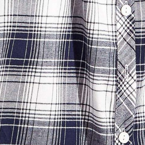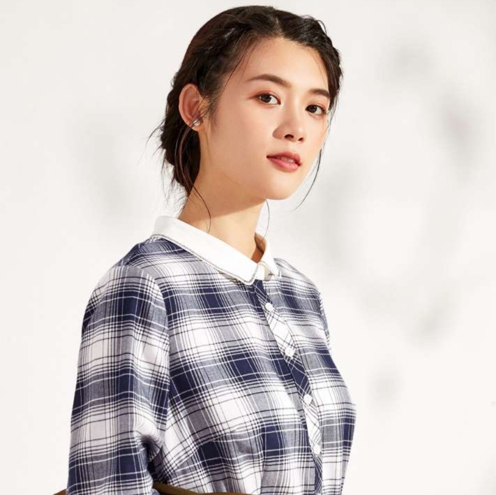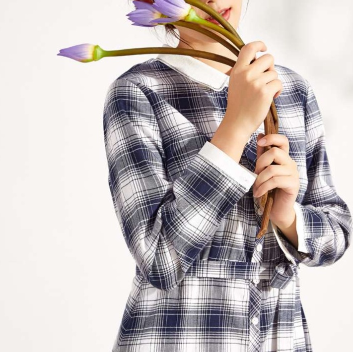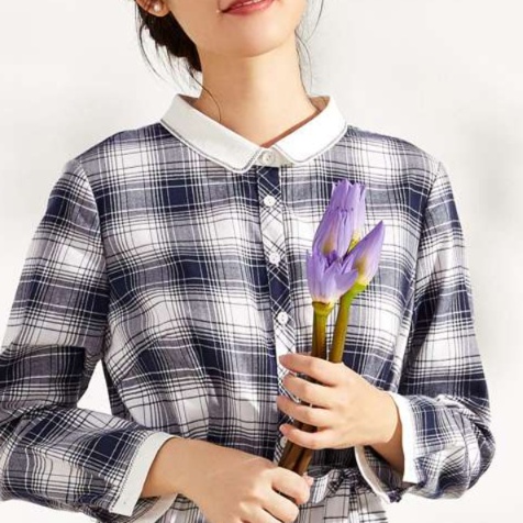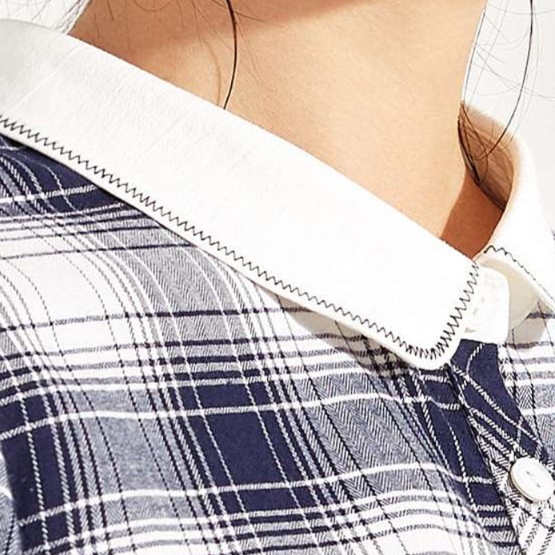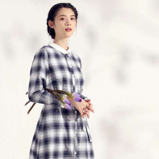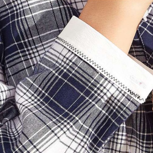 白い襟元と袖口の切り替えが、知的で上品な印象を演出