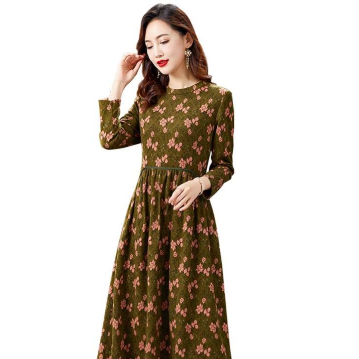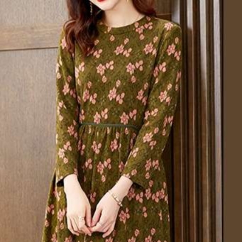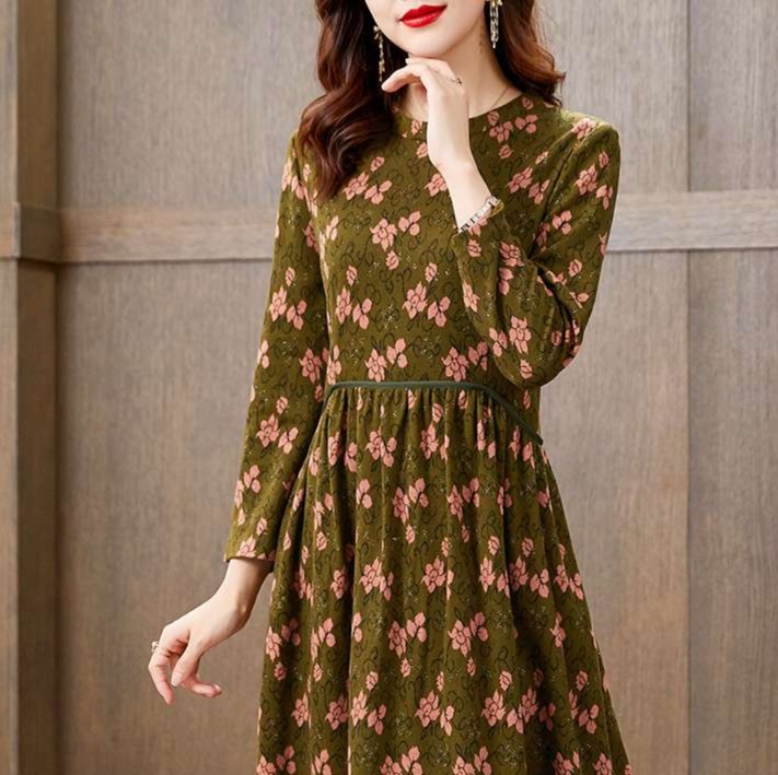 ウエストから広がる自然なフレアラインが体型をカバーしながら女性らしい優美さを表現
