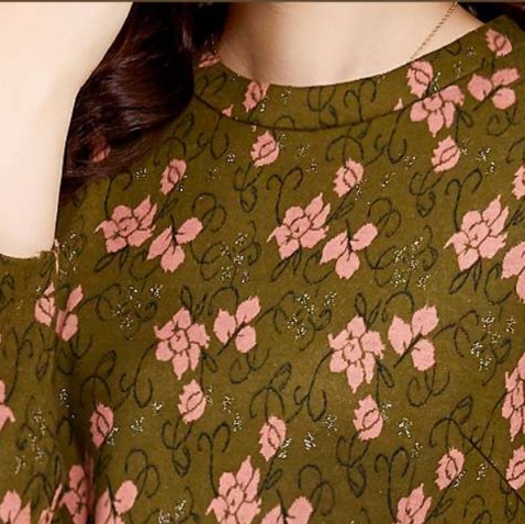 小ぶりな花柄が散りばめられた上品なデザインで、清楚で大人っぽい雰囲気を演出