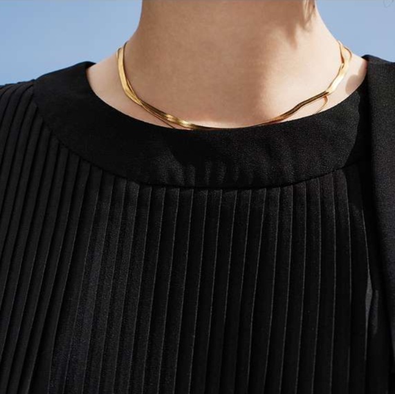 繊細な縦プリーツ加工が施された生地で、エレガントで上品な印象を演出