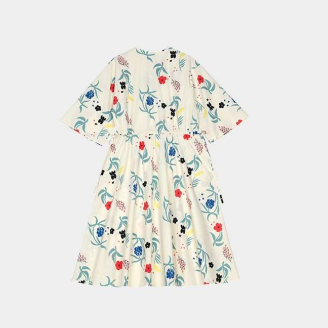 華やかな花々があしらわれた七分袖のチュニックワンピース。なめらかな生地感が心地よく、すっきりとしたシルエットで大人の魅力を引き立てます。上品な丈感とウエストのギャザーが絶妙なアクセントとなり、どんなシーンでも活躍する一着。日常使いから特別な日まで幅広く対応できる、スタイリッシュなアイテムです。