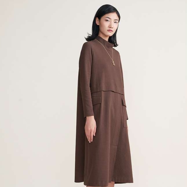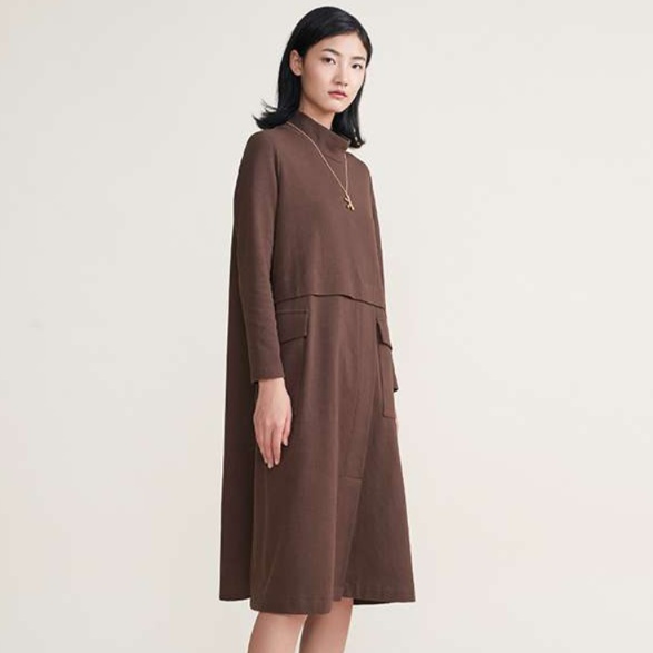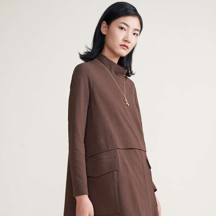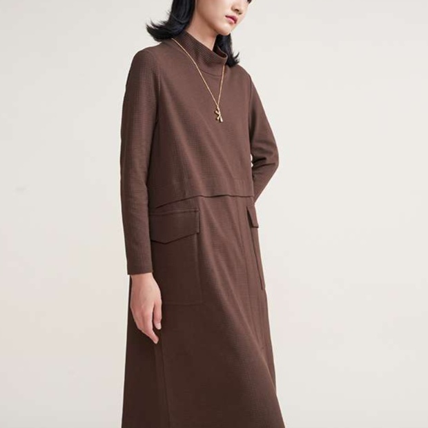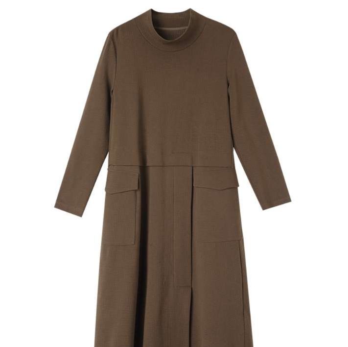 上品な襟元と長めの丈感が特徴的なチュニックワンピース。ゆったりとしたシルエットで体型カバーも叶える。ウエストラインの切り替えデザインがアクセントに。普段使いからちょっとしたお出かけまで幅広く活躍する一着。